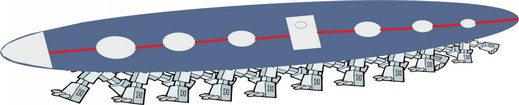 Petile springt auf den ausgefahrenen Steg und hastet an seiner Schwester und seinem Onkel vorbei. Er schlägt im Vorbeilaufen seiner Schwester leicht auf die Schulter: „Hallo Schwesterlein, hast du alles wieder kaputtgemacht?“ Er lacht und läuft schnell in das Ei hinein. Onkel und Nichte kommen hinterher. Die Rampe fährt ein. Die Tür schließt sich. Rasselnd beginnen die zehn Beinpaare einen Fuß vor den anderen zu setzen.